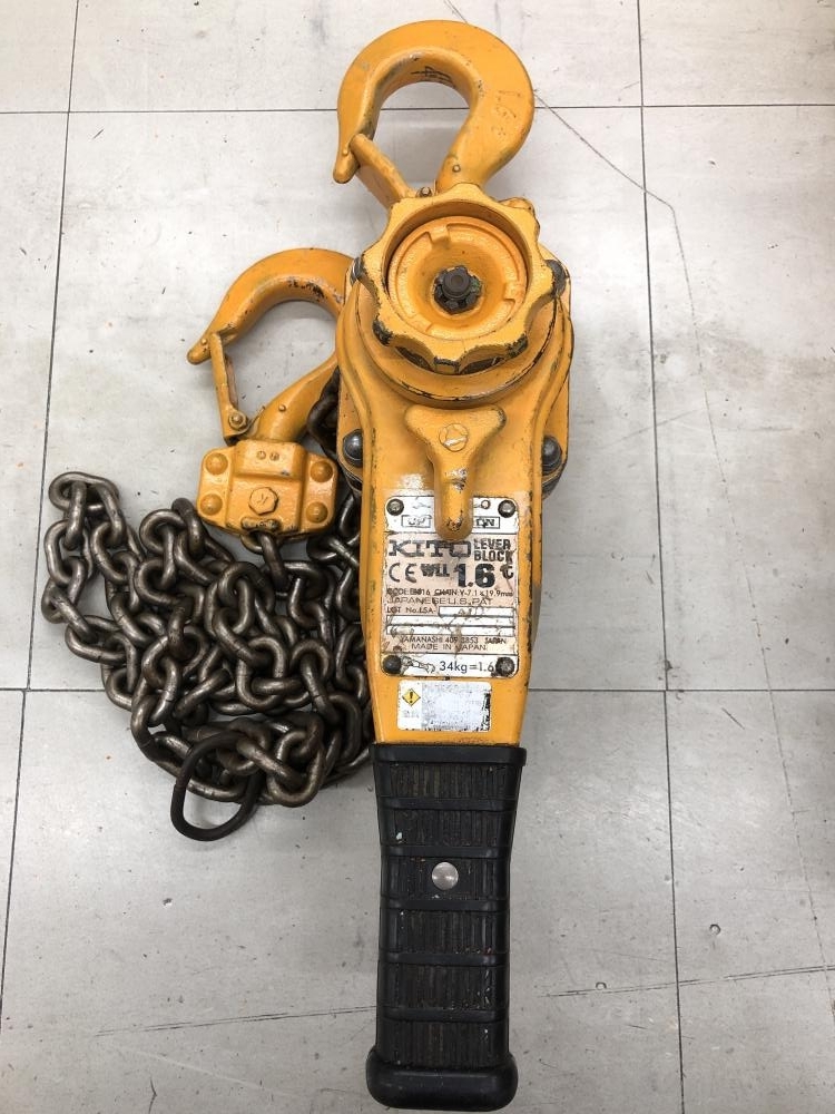 レバーブロックにはフックが2つついており、そのフック間をチェーンによって引き寄せる道具です。